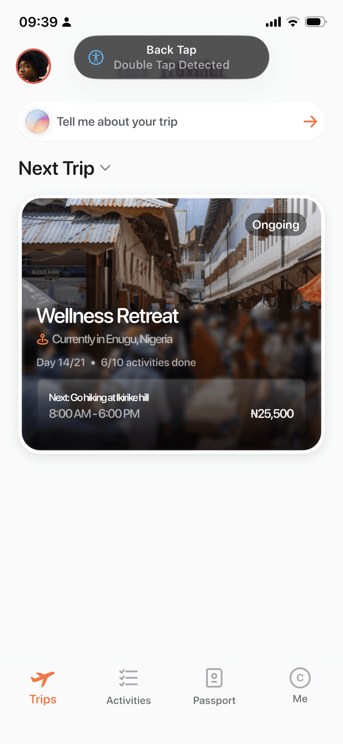Trip and itinerary management with smooth animations and robust search.