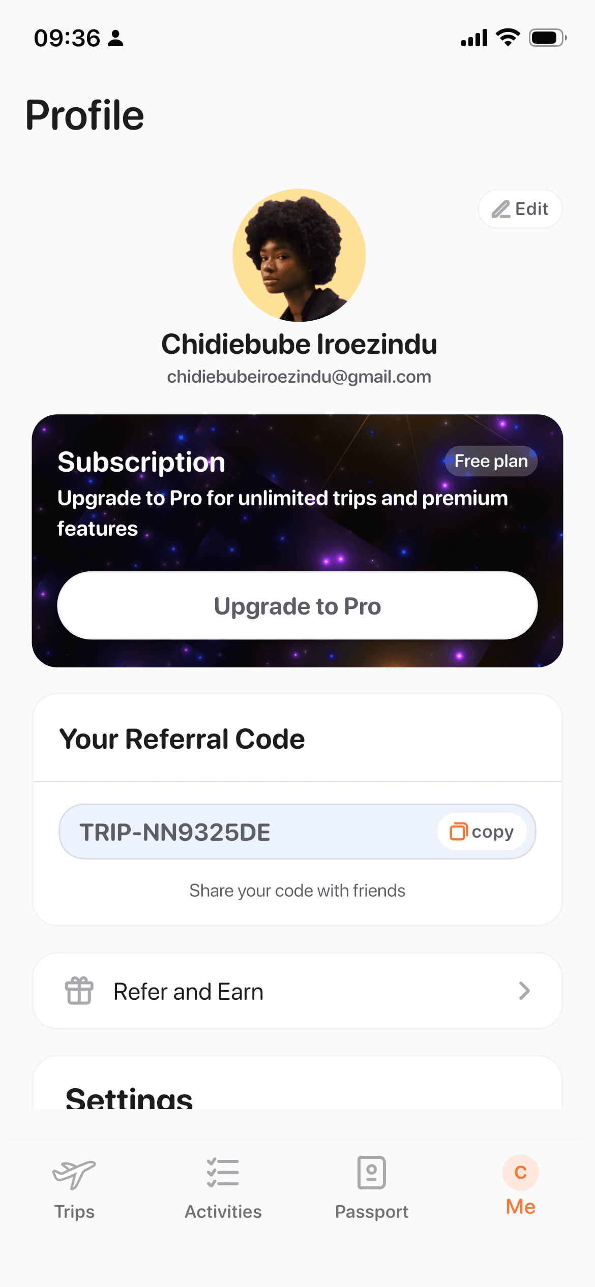 Passport screen showing countries, continents, and travel stats.